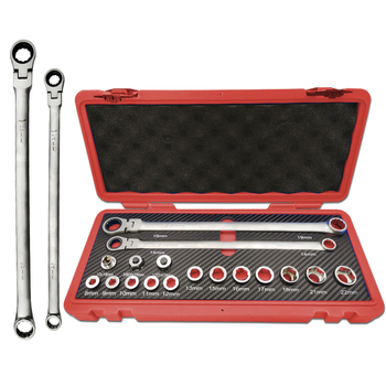 17-teiliger extra langer Flex-Kopf-Ratschen schlüssel mit Hülsenset, CR-V stahl, 14mm,19mm Schraubens chl üssel und 12-teiliger Hülse